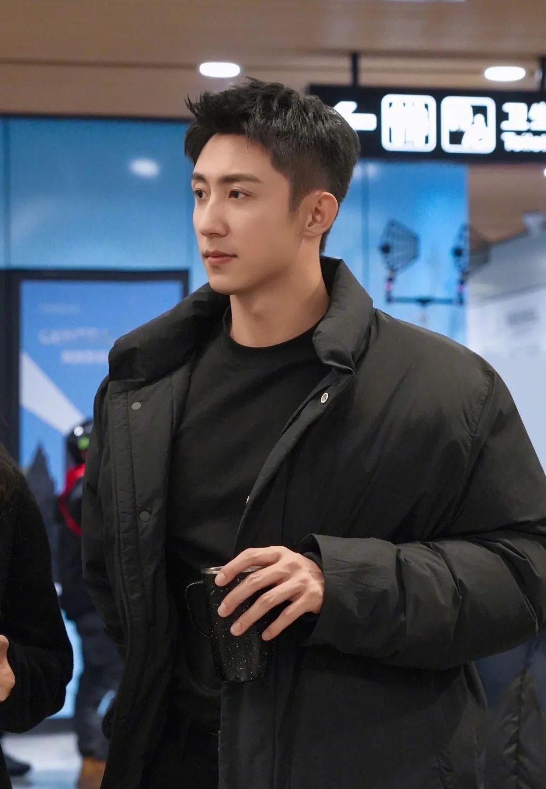 他在穿all black时就会增加很多道具,比如说先是内搭一件长一点的白色长袖,这样的话微微露出衣摆,瞬间全身就有了层次。到这儿还没结束,他还会用上蓝色围巾,增加全身看点。