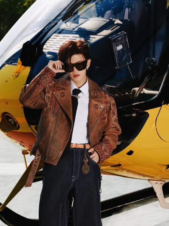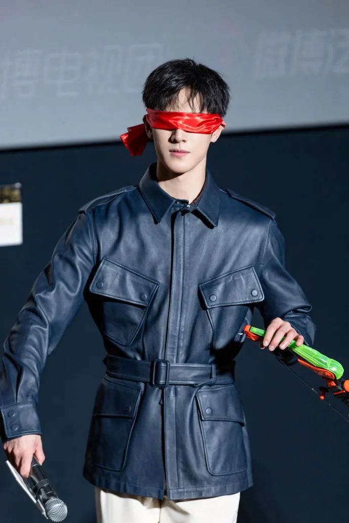 任嘉伦的这一套就比较复杂了,他选的是棕色系的皮衣,比黑色的更有复古文艺气息。而且,他在里面穿的衬衫和领带,也是一种比较得当的,彰显个性的同时也不会太过于的over。