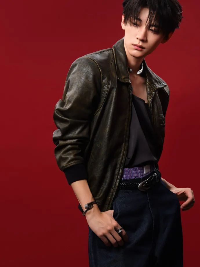 张凌赫这身look有异曲同工之处,也是衬衫和领带一起出现,只不过他的皮衣显然要更加简约一些,是这两年比较流行的款式,很能凸显男大生的气质。在我看来,他手上的手表也是起到了决定造型的作用。