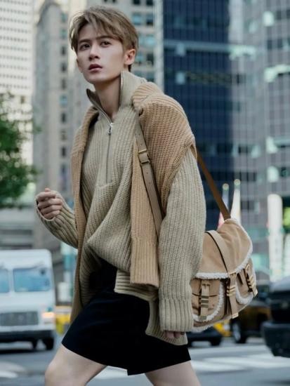 檀健次的这件驼色毛衣也十分好看,而且他用的是披一件毛衣的穿法,让自己的look变得更有层次感,这一招也非常好用,千万不要以为只有女生才可以这么做。